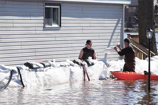 加拿大东部地区的洪水迫使民众在家门前堆沙袋筑“堤坝”,另一些人抱起宠物离开家园。截至4月28日,魁北克省已有约6000座建筑被淹没。加拿大首都渥太华宣布进入紧急状态。舆论认为,这是该国半个世纪以来最严重的洪灾。