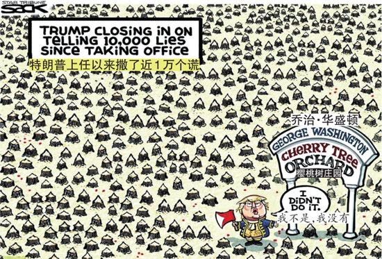 曾有“落樱神斧华盛顿”,今有“从不说谎特朗普”。他到底砍了多少樱桃树,恐怕自己也不知道。