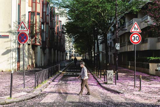 一位戴口罩的老人走在巴黎街头。法国是仅次于西班牙和意大利的欧洲疫情严重地区,法国总统马克龙4月13日宣布,将封锁措施延长至5月中旬。