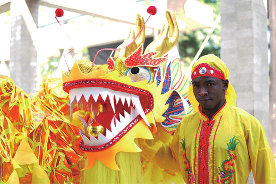 2018年7月,王晓乐参加坦桑尼亚达累斯萨拉姆大学孔子学院的舞龙舞狮表演。作者供图