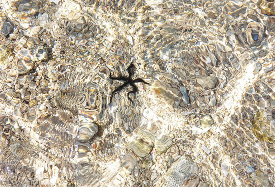 8月12日,毛里求斯马埃堡市附近,一只海星被石油染成黑色。