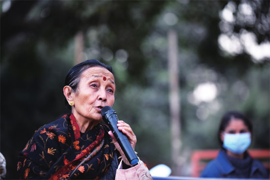 11月30日,尼泊尔加德满都,为纪念世界艾滋病日,尼泊尔人道救援组织Maiti Nepal创始人发表演讲。