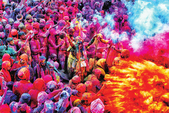3月12日,印度南德加奥恩,民众互相投掷彩色粉末,庆祝洒红节。洒红节是印度教最重要的节日之一。