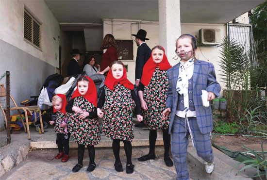 3月17日,以色列贝内贝拉克,当地人身穿节庆服装,庆祝犹太教传统节日普林节。