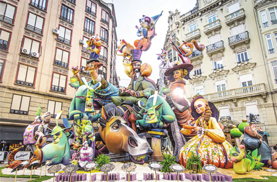 3月19日,西班牙瓦伦西亚,民众庆祝传统节日法雅节。每年,西班牙在3月15日至19日间庆祝法雅节,有烟花秀、游行、献花等活动,庆祝的高潮是在午夜焚烧节庆人偶。
