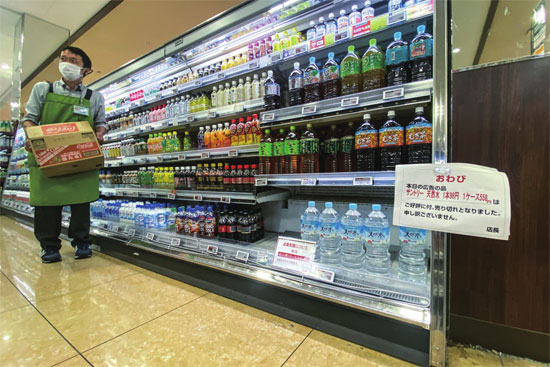 多家日媒称,政府和专家的警告引发了民众的担忧和“恐慌性囤货”。一些超市的瓶装水、包装米遭遇抢购,方便面、便携式厕所等商品热销,商家不得不限量出售水和食品。