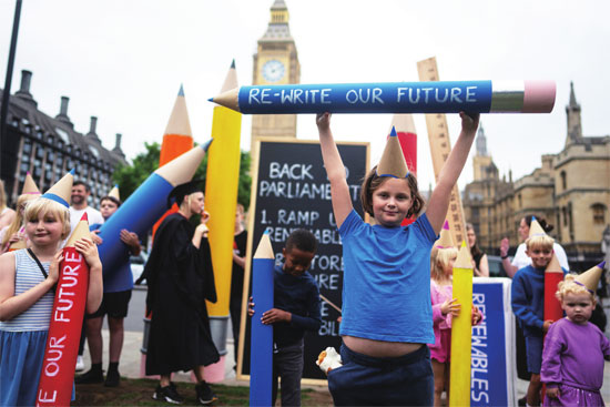9月2日,英国伦敦,儿童参加抗议活动,敦促政府在气候变化问题上采取行动。图片来源 视觉中国