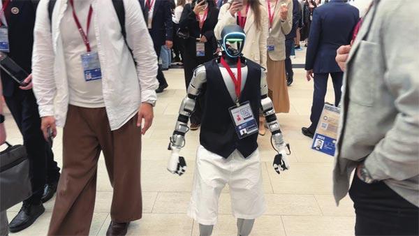 机器人“瓦洛佳”是论坛上的一大明星,它能够像人一样行走,根据语言指令完成一些简单的动作。对于看过机器人在春晚上扭秧歌的中国人来说,“瓦洛佳”可能并不稀奇,但在论坛上,它总是被举着手机的来宾们层层包围。有一次,它在人群中选中了我,主动握手致意,仿佛是在欢迎我这位远道而来的中国客人。