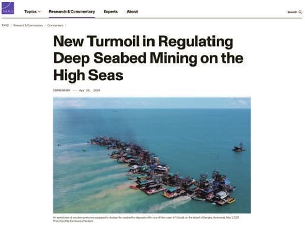 近年来,随着关键矿产供应链竞争日益白热化,欧美各国越来越关注海底矿产行业,将其视为在关键矿产领域挑战中国主导地位的重要机遇。国际海底管理局(ISA)也在推动制定海底采矿监管框架,但美国并未加入《联合国海洋法公约》,在国际规则制定中影响力有限。为此,美国知名智库兰德公司推出研究报告,为美国争夺海底矿产的优先发展权出谋划策。