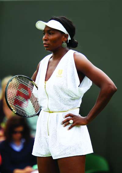 ❶2011温布尔登网球公开赛上,大威廉姆斯身穿蝙蝠袖网球服。