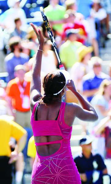❷2010年美国网球公开赛,大威廉姆斯一身桃红色网球服,背后设计尤其独特。