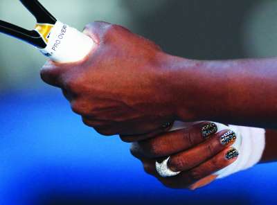 ❸小威廉姆斯手戴奢华钻戒,搭配豹纹美甲,这款美甲也引来很多时尚潮人的追捧。