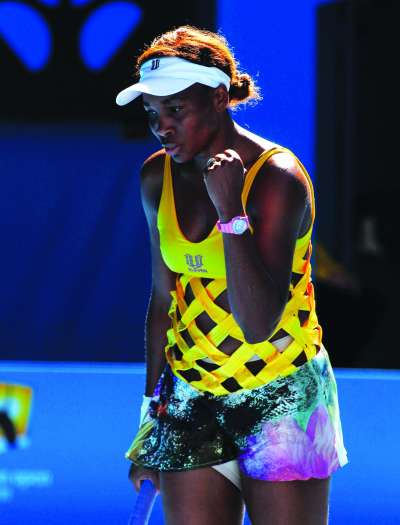 ❺2011年澳大利亚网球公开赛,大威廉姆斯的网球服不仅颜色鲜艳,也极其暴露。