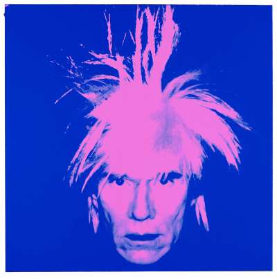 “掠夺”女性的阴柔气质也让沃霍尔着迷。在一些自画像作品中,沃霍尔浓妆艳抹,戴着金色或黑色假发,最让人窘迫的是,他还穿着男性气十足的白衬衫,打着格子领结。这些可不是沃霍尔在家里鬼鬼祟祟的“异装”实验,这个戴银色假发掩饰秃顶的男人,在试验他与女明星之间减少差距的可能性。