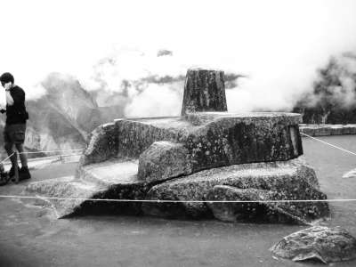 初次来到马丘比丘时的感觉,就像在看惯了达·芬奇作品的廉价招贴画后突然看到《蒙娜丽莎》真迹。与《蒙娜丽莎》相似,马丘比丘比在明信片上看到的更紧凑。在不到1小时内,我和约翰就以相同的次序造访了宾汉百年前发现的一切:内墙有些脱落的皇家墓穴;有着完美外形的太阳神庙;神圣广场上的巨大石砌结构,比成人还高;号称最神秘的“拴日石”,它周围围了一圈虔诚的游客,他们张开双手,希望与这块传说中有灵性的巨石共鸣。