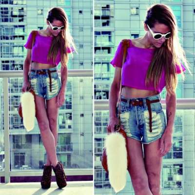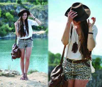 牛仔帽与豹纹短裤构成帅气感觉 |