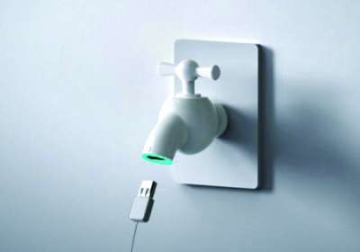 这款外形新颖的USB电源接口,不仅看起来像水龙头一样,使用时也要利用水龙头上的开关进行供电。设计师将使用电源和控制水流巧妙地结合在一起,达成了新奇有趣的效果,不仅可以吸引好奇的消费者,还能让家居更加个性化,相信许多人都乐意尝试一下的。