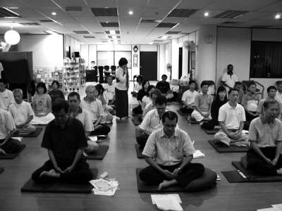 夜幕降临后,50多名学员在大厅中的垫子上盘腿坐定,强迫自己陷入冥思状态。我右边是一个日本姑娘,长长的黑发瀑布般披洒在挺直的后背上,我努力不让自己陷入妄想,老实说,这可真难。这时,负责训练我们的宗师按下了录音机的“播放”键,屋子里立即回荡起原始而神秘的音乐,那或许是迪吉里杜管(印度传统乐器)的嗡鸣吧?多有趣的开场!我一度咬着牙努力不让自己笑出声,自从离开学校以来,再也没有这样开心过了。