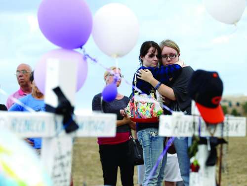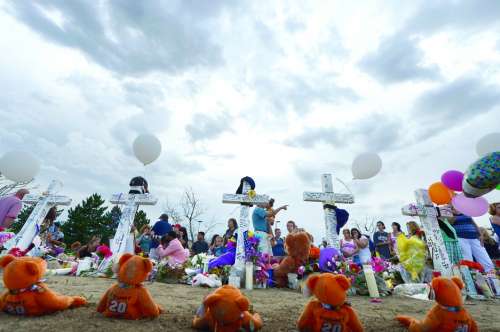 7月23日,美国科罗拉多州的奥罗拉市,人们在枪击事故发生的电影院附近摆满了鲜花和其他纪念物品。数天来,这里的民众持续悼念着亡者。 |