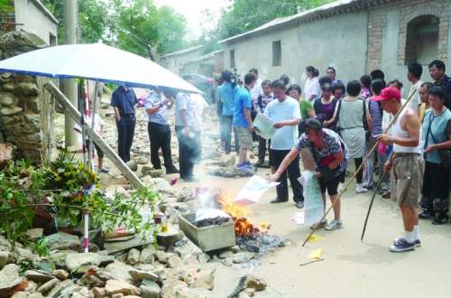 ⑤7月23日上午,在燕山分局向阳路派出所所长李方洪21日暴雨中的殉职处,北京房山凤凰亭村的村民们自发地搭起简易灵台,献上鲜花,用民间朴素的方式祭奠李方洪。 在7月21日的暴雨中,凤凰亭村受灾严重,李方洪带领民警先后救助50余名被困村民。17时20分许,李方洪再次冲入水中救助群众时,被落入水中的电线击倒而牺牲。 |