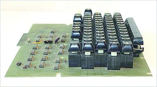 B 70年代初:加入簧片开关 Selectric打字机的机械式伸缩键盘虽然够不错了,但在自动化、智能化方面还不尽如人意。到上世纪70年代初期,人们开始在流行的键盘设计中加入簧片开关。其基本原理是一块磁铁同两根金属纤维一齐工作,按下键盘以后会增加磁场对金属纤维的作用力,启动开关,两根金属纤维形成电路并输出相应的字符。松开键盘后,磁场与金属纤维的作用又恢复到从前。 |