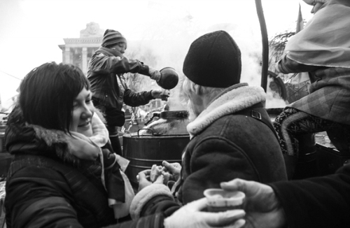自上个月亚努科维奇放弃与欧盟的合作,转投俄罗斯的怀抱后,乌克兰的大规模示威活动就开始了。随着冬天的来临,示威活动已如滚雪球般发展为了一场旷日持久的反政府集会。在基辅市的独立广场上,抗议者需要面对的不只是防暴警察,还有寒冷的天气。