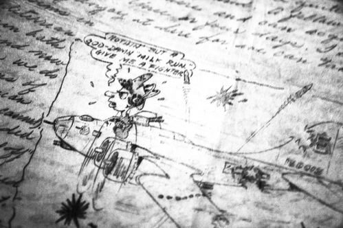这封带有素描的信是二战时的一位飞行员写的,他想在退伍后成为漫画家,但在写下这封信不久即告阵亡。