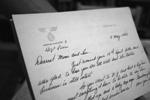 贺瑞斯·埃弗斯用希特勒私人信纸写的信,信纸来自希特勒在慕尼黑的一处别墅。