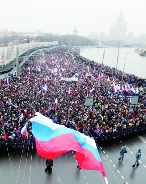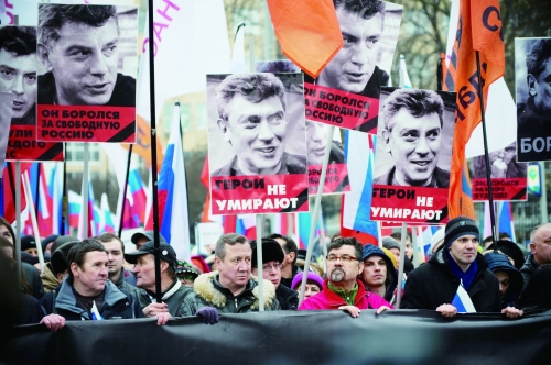 3月1日,民众在莫斯科游行,纪念遭枪杀的涅姆佐夫。图片来源 CFP |