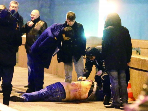 2月28日,涅姆佐夫陈尸莫斯科河大桥上。图片来源 CFP |