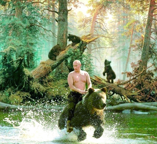 网友将普京ps成“骑熊硬汉”。但曾是俄首富的霍多尔科夫斯基接受路透社采访时说,“赤裸上身的普京并非强势的领导者,而是裸体的国王”。 |