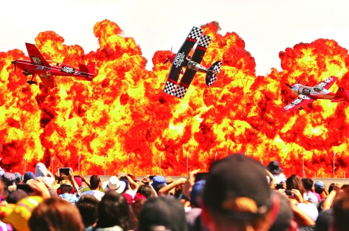 当地时间2015年3月1日,澳大利亚阿瓦隆,澳大利亚国际航展在当地举行,民众观看飞行员精湛的飞行表演。该展览有超音速喷气式战斗机和攻击直升机参展,预计将吸引18万游客前来观看。