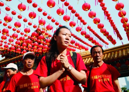 3月1日,马来西亚吉隆坡,马航MH370的中国乘客家属前往乐圣岭天后宫祈祷。