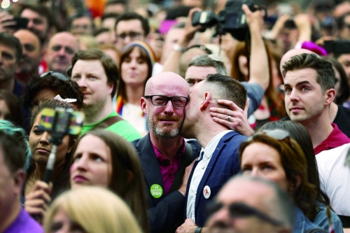 5月23日,爱尔兰都柏林,爱尔兰就同性婚姻是否合法举行全民公决,62%的投票者投了赞成票,爱尔兰因此成为世界上第一个通过全民公投实现同性婚姻合法化的国家。