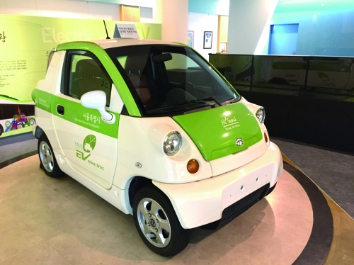 为了改善空气质量,首尔正在大力发展各种清洁能源汽车。图2中的车是首尔开发出的第一款性能可以媲美传统汽车的电动车,最高时速可达130千米/小时。不过,到目前为止,它还只被用于督查、巡逻,无法在普通市民居住的社区中见到。
