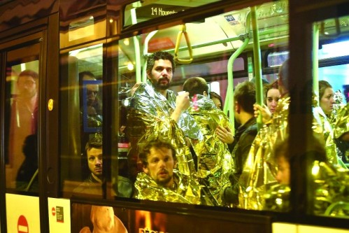 2015年11月13日晚,巴黎恐袭的幸存者撤离现场。 |