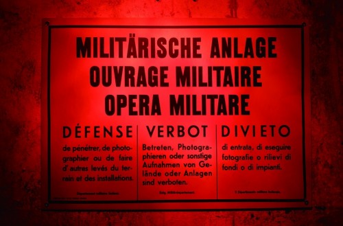 瑞士圣哥达山,曾经的瑞士军队地堡前写有“军事区禁止进入及拍摄”的提示。 |