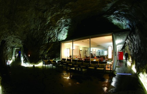 瑞士圣哥达山口,昔日瑞士陆军堡垒已成为La Claustra酒店,图为酒店的餐厅。 |