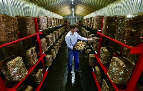 瑞士埃斯特费尔德 ,蘑菇种植公司Gotthard-Pilze员工艾利克斯·鲁斯(Alex Luss)正在采蘑菇,这里以前是瑞士的弹药仓库。该公司共有11座类似的军事要塞,每年生产24吨蘑菇。 |