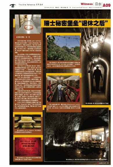瑞士的钟表、巧克力和滑雪道举世闻名,军事防御系统也十分强大。二战期间,瑞士有近8万个秘密掩体和庇护所。在冷战时期,瑞士军费开支增加,新建了不少秘密掩体。瑞士法律也曾要求,住宅必须有防空洞,以应对可能到来的核灾难。