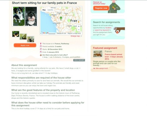 在新西兰注册的“Mind My House”网站、澳大利亚的“Nomador”和“Housecarers”网站,以及在英国成立、辐射全欧洲的Trusted Housesitter(诚信房屋托管),通常会挂出很多业主的需求,比如“地处法国南部的美丽别墅,我和丈夫将旅行一段日子,需要有人帮忙照看房子及一只乖巧的拉布拉多犬……”只需登录网站并推销自己,努力让业主觉得你是最适合照看房子的那个人,就可静待机会上门。