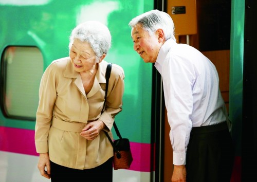 7月25日,日本东京,明仁天皇和皇后美智子乘火车前往度假地。