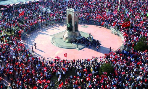 当天,伊斯坦布尔市中心塔克西姆广场变成红色的海洋,集会者打出“不要独裁也不要政变,需要民主的土耳其”的红白色横幅。共和人民党领导人克勒奇达若奥卢在讲话中呼吁“团结一致”,反对各类针对现行议会制的政变。