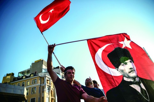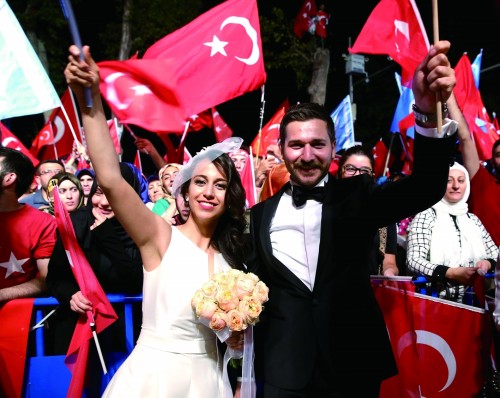 7月24日,土耳其伊斯坦布尔,多个党派民众集会抗议政变。
