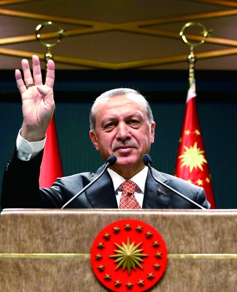 7月24日,土耳其安卡拉,土耳其总统埃尔多安在总统府发表讲话。