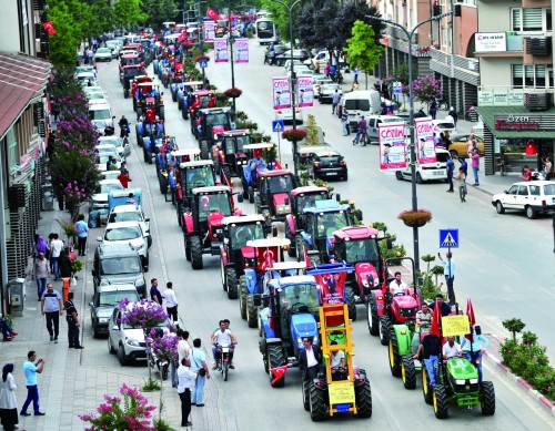 7月21日,土耳其布尔萨,民众开拖拉机列队抗议军事政变,声援总统埃尔多安。