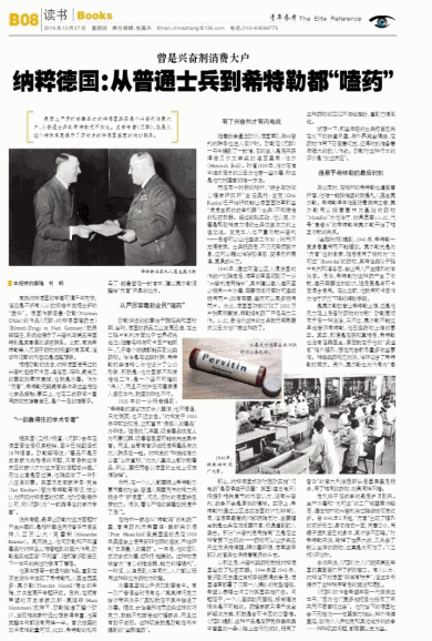 表面上严厉打击毒品的纳粹德国其实是个兴奋剂消费大户,从普通士兵到希特勒无不如此。史学专著《沉醉》,正是从这个特殊角度揭示了药物与纳粹德国盛衰的微妙联系。