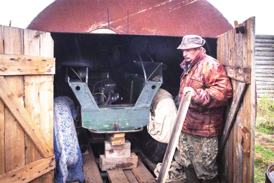 载着他在附近兜风的村民波波夫,用驯鹿皮和火箭外壳制造了一只雪橇。在普列谢茨克附近的10来个村落中,人们都爱用这种雪橇,称之为“火箭橇”。在另一个村庄,摄影师发现了一辆用火箭残片和旧冰箱拼接而成的拖拉机。