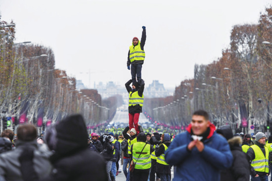 12月15日,“黄背心”在巴黎示威。图片来源 视觉中国