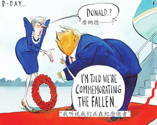 特朗普访英恰逢诺曼底登陆日(“D日”)75周年。作为英国首相特蕾莎·梅会见的最后一批外宾之一,美国总统献上了一个纪念逝者的罂粟花圈……